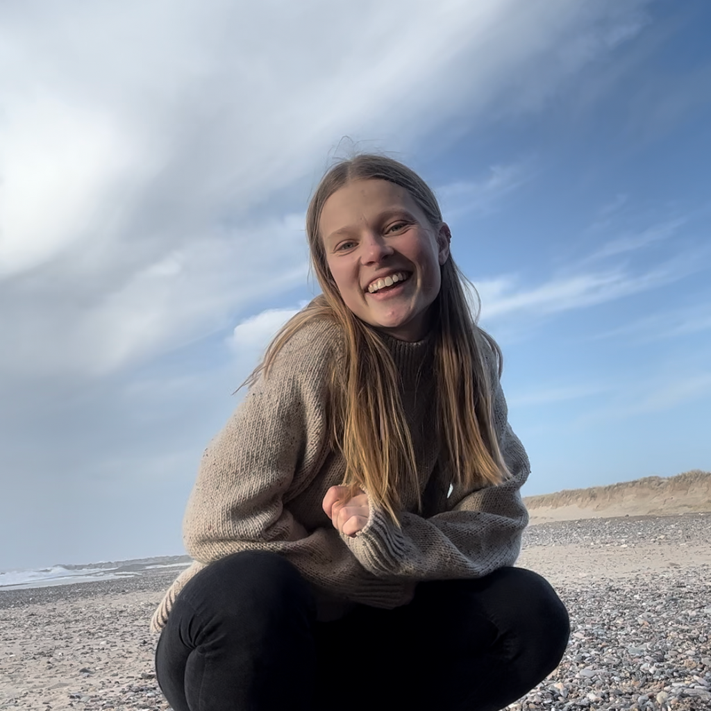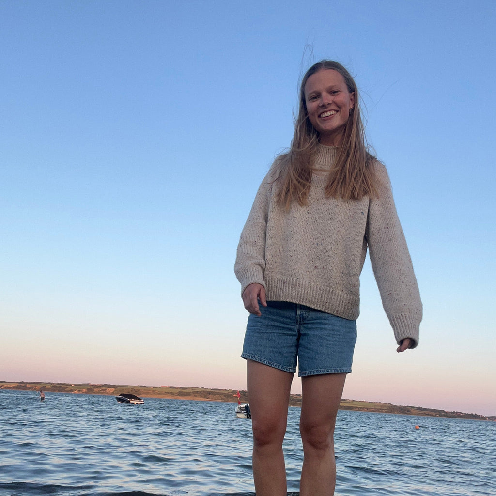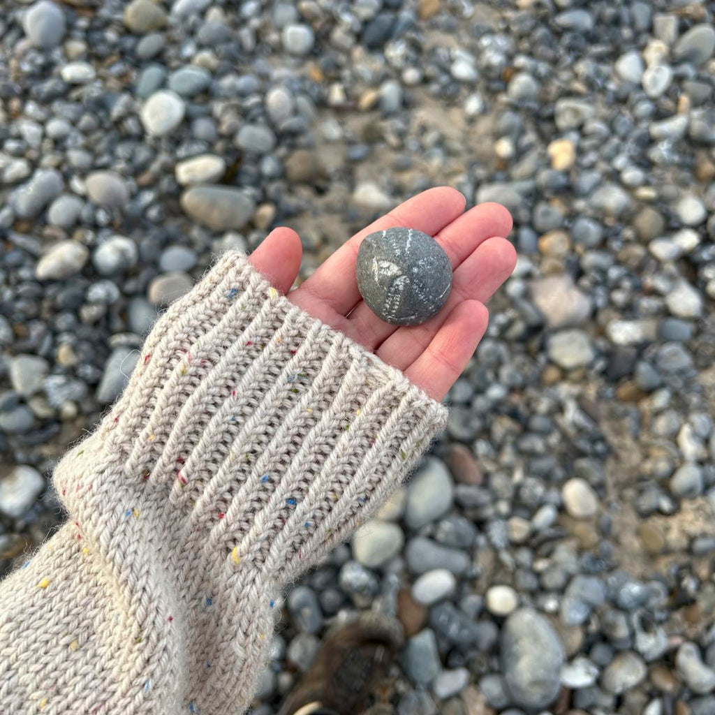 Strikkefasthed: 19 x 25 masker i glatstrik på pind 4 mm = 10x10 cm